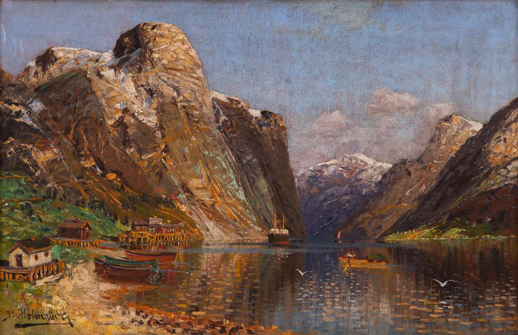 na rubu: J. Holmstedt, Hardangerfjord, Norwegen a nečitelné razítko