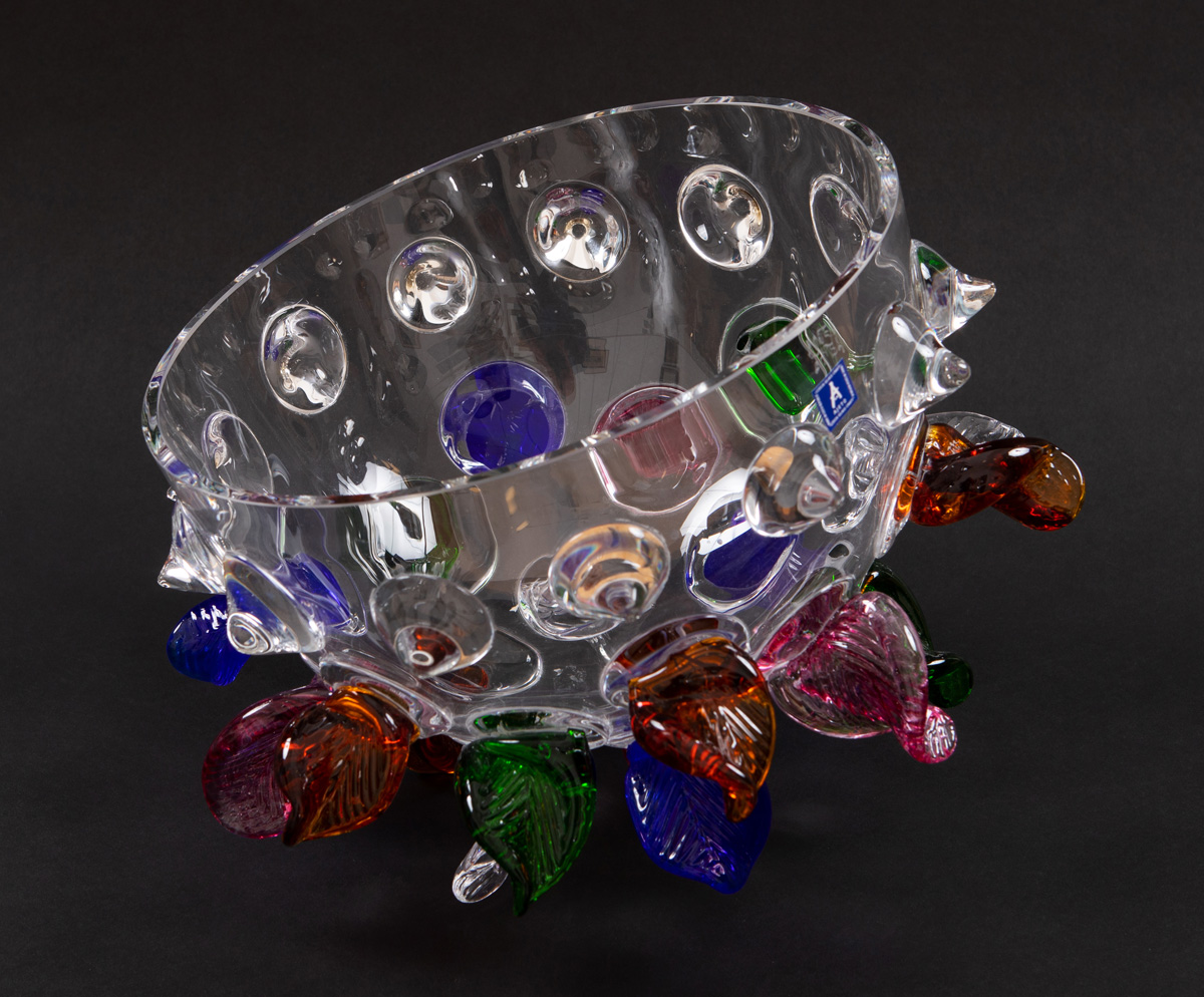 Technika a rozměr:čiré sklo s natavenými reliéfně zdobenými lístky a bodláky