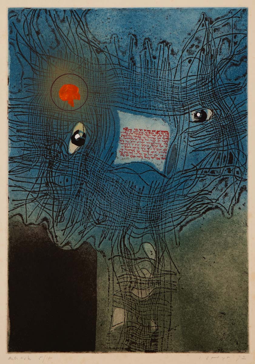 Technika a rozměr:kolorovaný lept, tempera, papír
