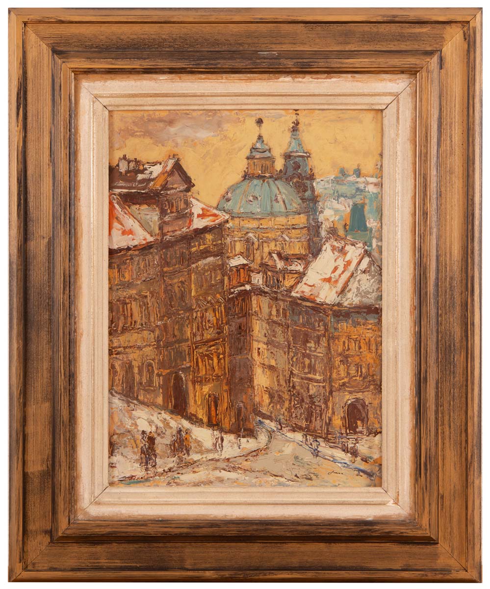 Informace o autorovi:Žák prof. Preislera, Liebschera a Blažíčka. Studoval jak Akademii v.u., tak i architekturu. Maluje především krajiny, panoramata z Prahy a obrazy z pražských uliček a zákoutí. Jeho obrazy mají zcela charakteristický rukopis, expresivní vyznění a osobitou barevnost. Na jeho tehdejší tvorbě je poznat, že studoval i architekturu, které se věnoval do 30. let. Ve své době byl vyhledávaným, dobře prodávajícím a oceňovaným malířem.