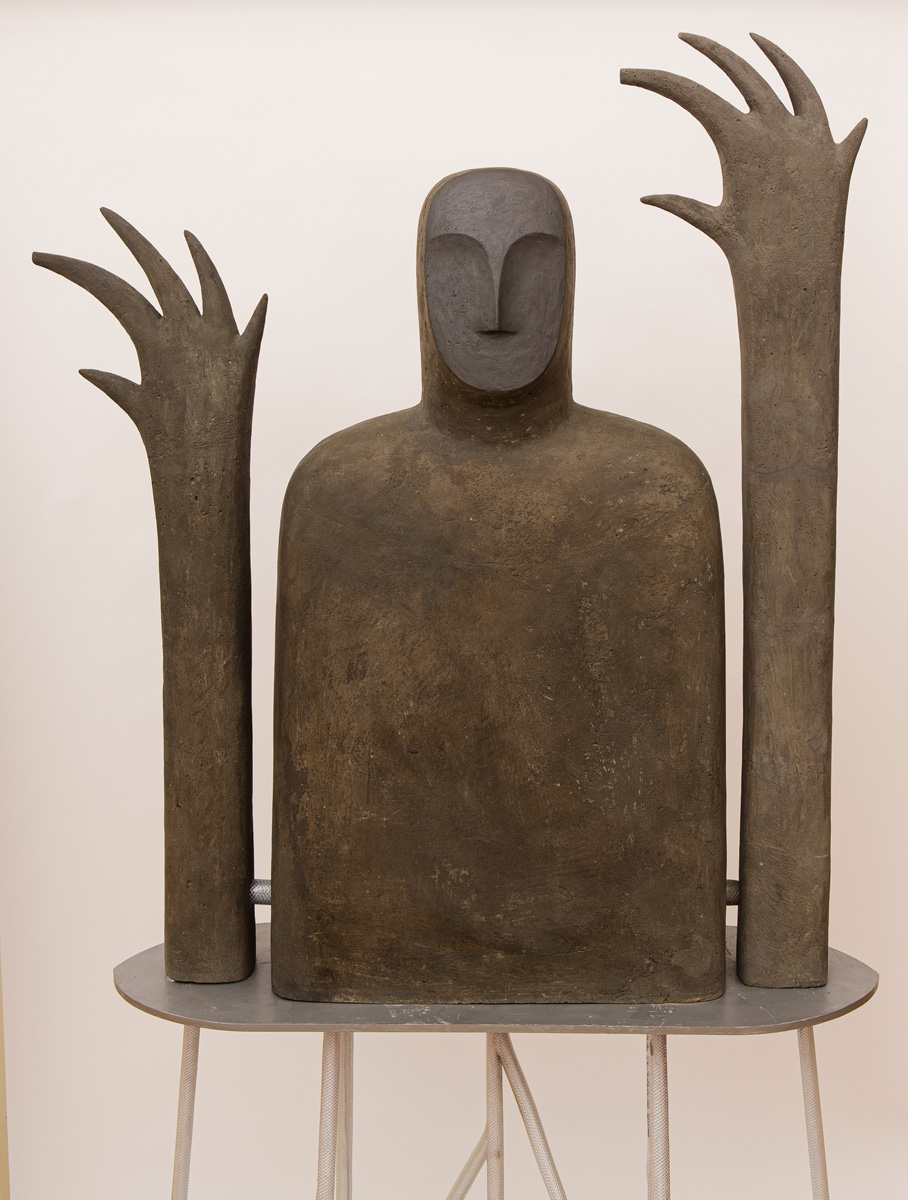 Knetlová ve svých sochách vytváří napětí mezi ručně modelovanou hmotou a industriálními komponenty. Tento dialog mezi gestem a strojem, citlivostí a brutalitou materiálu tvoří