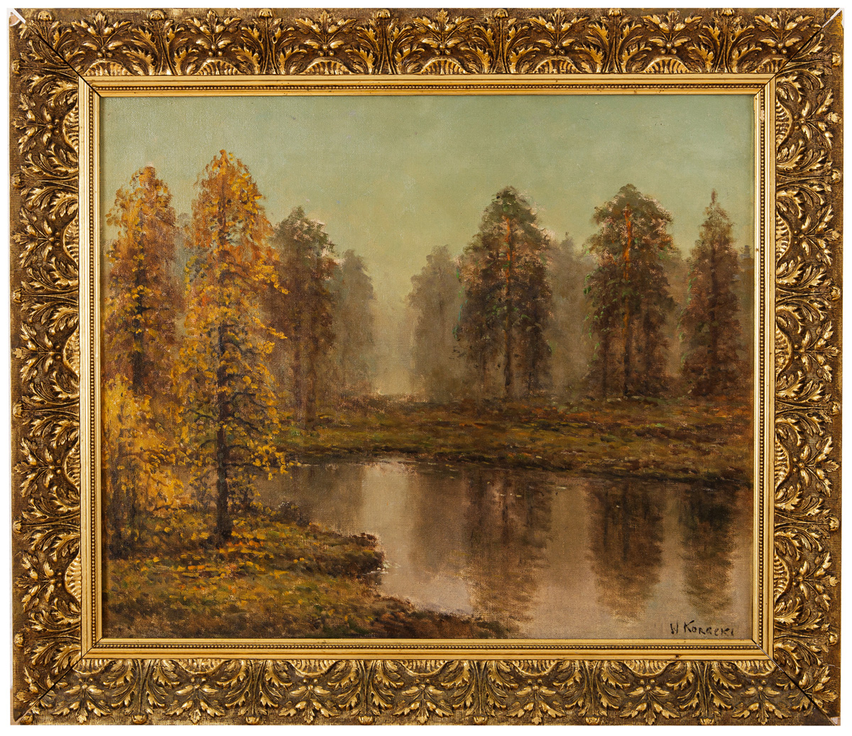 Informace o autorovi:Narodil se v městě Kamenec Podolskij na Ukrajině, absolvoval Kyjevskou školu kreslení A. Muraško. V roce 1921emigroval do Polska. Žil ve Varšavě, věnoval se krajinomalbě. Jeho náměty byly romantické části vesnic a pohledy do provinční lesní krajiny. Po vzoru klasické ruské krajinomalby byly na jeho obrazech dominantou lesní cesty, nebo říčky, uvádějící pohled diváka do obrazového prostoru. Často to byla zimní zasněžená krajina, mokřiny na kraji lesa, nebo části vodní plochy, hraničící s lesním porostem. Na jeho obrazech se často objevují vesnické chaloupky, mlýny, nebo jiná vesnická hospodářská stavení. Nehledě na značnou kýčovitost námětů se jeho obrazy v meziválečném období těšili velké popularitě. Autor hodně vystavoval a náměty mnohých svých obrazů často opakoval. Během Varšavského povstání v roce 1944 značná část jeho obrazů shořela v jeho atelieru. Po povstání byl anektován v pracovním táboře v Pruszkowie, později v Lipsku. Po válce se vrátil zpět do Polska a usadil se v obci Milanówek nedaleko Varšavy. Vrátil se k malování imaginárních a idealizovaných romantických krajin v duchu své předválečné tvorby.