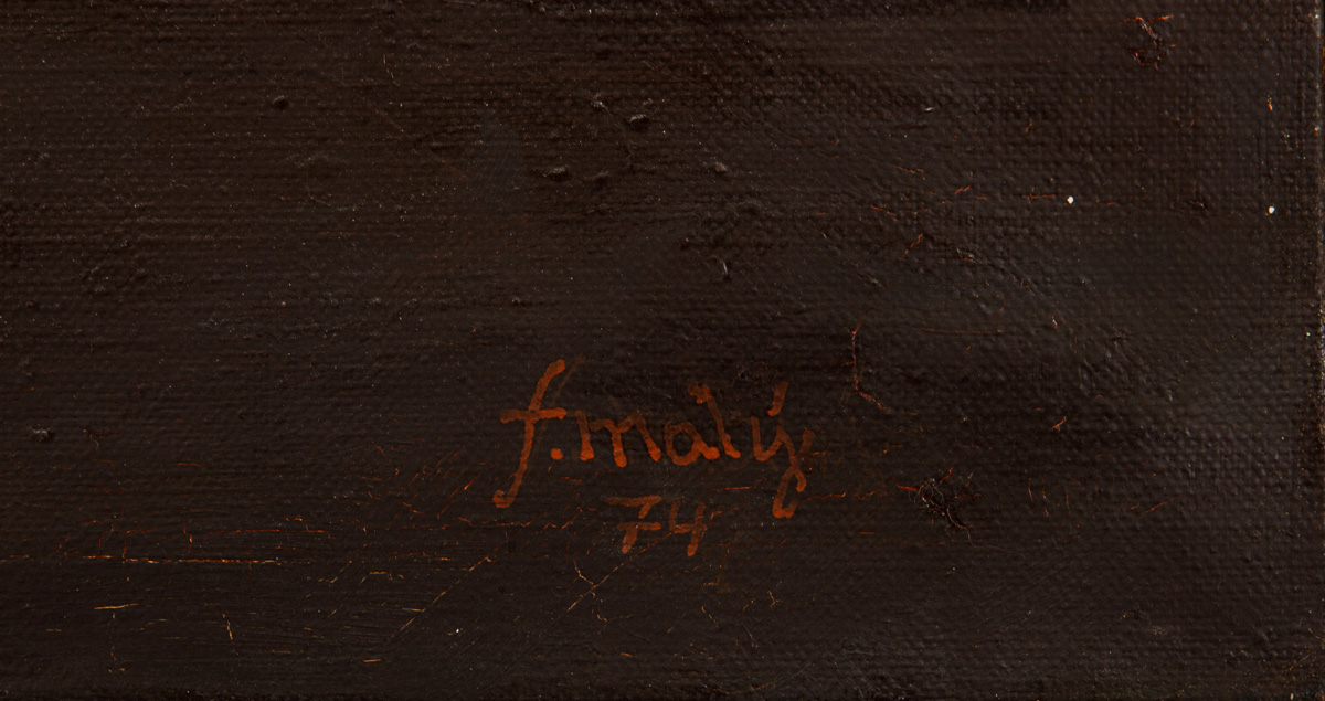Jak o tomto autorovi se vyjádřil PhDr. Karel Spr (k surrealistickému obrazu z naší předchozí aukce): „Jsou-li v dějinách československého moderního malířství dosud nezpracovaní autoři, kteří by si to zasloužili, patřil by mezi ně rozhodně malíř František Malý, který sice žil dlouho v Brně, avšak počátky jeho umělecké dráhy spadají do let autorova bratislavského pobytu, během nějž vznikl i posuzovaný obraz. Raná Malého tvorba je dosud mámo známá, přestože na počátku třicátých let uskutečnil jedny ze svých nejzajímavějších obrazů, z nichž některé jsou součástí sbírek Muzea města Brna a Slovenské národní galerie v Bratislavě. Znalost těchto obrazů, včetně jejich signatur, dovoluje usuzovat, že obraz, který by mohl být studií k většímu, rozměrnějšímu plátnu Milenci, má všechny rysy Malého díla, které navíc podpoří i dochované kresby, z nichž jedna byla v majetku významného historika umění Jiřího Hlušičky. Zvláštní je, že, když Malý připravoval své retrospektivy, pak vždy kladl důraz na své pozdější dílo, nikoli na období, ve kterém zasáhl do československého umění výrazněji, a sice na počátek třicátých let a pak na leta po polovině třicátých let, kdy se přiklonil více k surrealismu. Období 1931-1933 se zdá být, vezmou-li se v úvahu Malého obrazy a kresby, jež známe jen dílčím způsobem, nejpřitažlivější, protože v něm propojoval abstraktní, organické útvary a figurální zlomky lidských těl. Spojením těchto protikladných rovin dosahoval neotřelých významových a kompozičních souvztažností. Důležité je pro Malého různosměrný pohyb diagonálně se naklánějících plánů, i vynořující se temný střed. Malý s oblibou přecházel mezi plasticitou, vytaženou až na samou únosnost tvaru, a linearitou, která pro něj představovala i důležitou spojnici jako na tomto obraze. Zvláštním způsobem Malý pracoval se stínem, jak ukazuje tento jeho obraz, jenž bychom mu mohli při skromné znalosti jeho raného díla připsat, kdy světlo dopadá prudce zprava, a tím podtrhává plasticitu postav i abstraktních útvarů. Doufejme, že se v budoucnu objeví další Malého obrazy pocházející právě z tohoto období, jež by nám ukázaly, kam až zasáhl vliv Josefa Šímy a Františka Muziky. Mohou totiž obohatit a rozšířit typ malby, opírající se o vyhraněnou představivost.“.