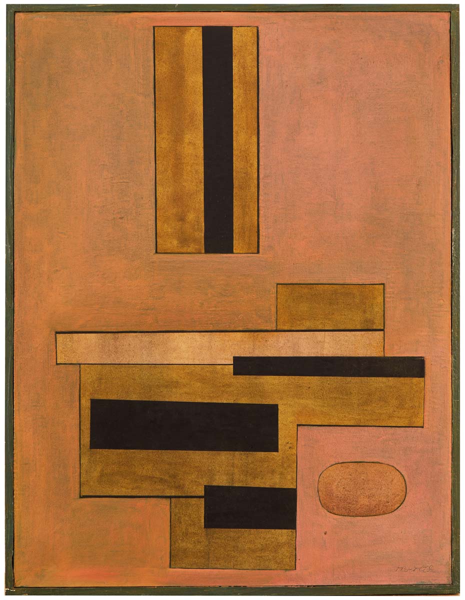 Ryze abstraktní tvorba vznikající od konce čtyřicátých let vyniká různorodou tvarovostí elementů umístěných většinou na jednobarevná pozadí, v kompozicích, v nichž hrají velkou roli principy skladebnosti. Část prvků je geometrická, pozdější tvorba obsahuje biomorfní a organické tvary. Zdá se, že vývoj směřoval od geometrismu k organičtějšímu tvarosloví. Řada kompozic vykazuje promyšlené koloristické řešení, část prací se pokouší o monochromní postupy. Malby jsou prováděny olejovými nebo temperovými barvami, nechybí ani zásahy tuší.
