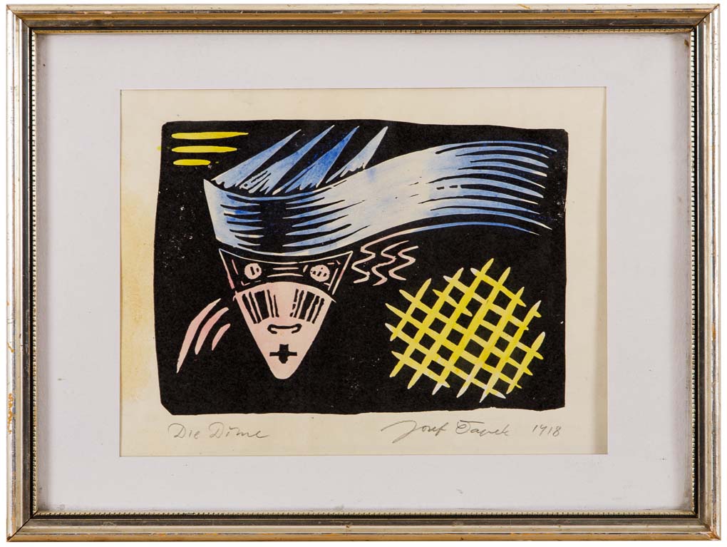 Technika a rozměr:linoryt, autorsky kolorováno, akvarel, papír