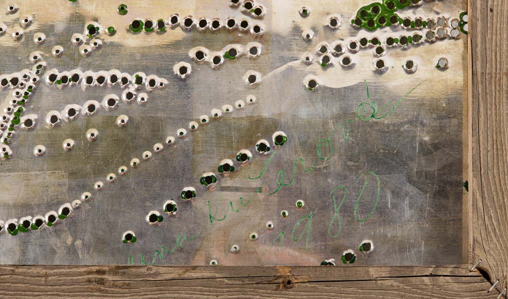 Technika a rozměr:lakovaný perforovaný plech, (matrice), olej