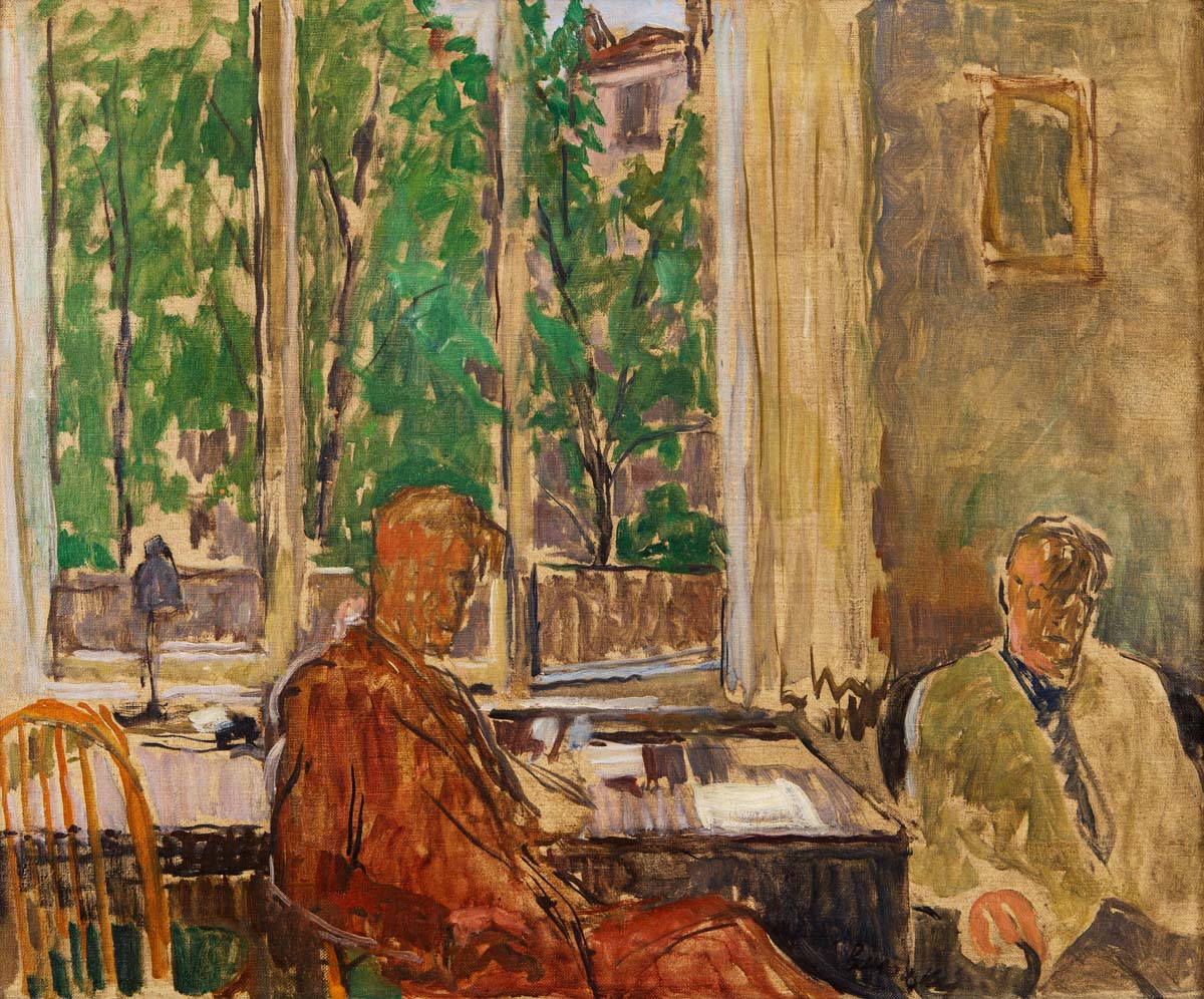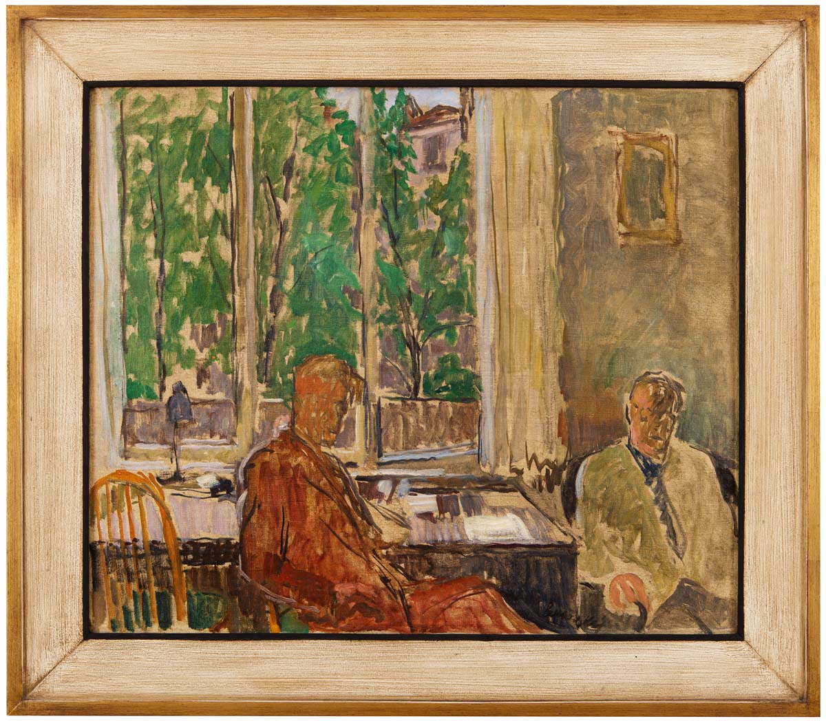 Popis:Z odborného znaleckého posudku PhDr. K. Srpa: "Václav Bartovský byl jedním z nejvýznamnějších českých malířů minulého století, který čeká na své plné docenění. Přestože na přelomu dvacátých a třicátých let prošel vlivem kubismu a částečně i abstrakce, brzy si našel svůj osobitý styl, který byl těmto směrům opačný, vycházející částečně s Henri Matisse a způsobu malby, rozvíjející se paralelně s avantgardním proudem. Od počátku třicátých let vytváří osobité obrazy, odlišující se od všeho, co v českém moderním malířství vznikalo, vyvíjející se vlastní svébytnou cestou, která neměla v našem umění obdoby. Důraz kladl na barvu jako základní výrazovou hodnotu, na potlačení prostoru a objemu. Ojedinělým způsobem dokázal pracovat s plochou jako základním odkazem progresivního přístupu ke znázornění. Během druhé světové války dospěl k výrazně kultivovaným, malířsky mistrovsky provedeným obrazům. Přestože stále vycházel z reality, obrazy promyšleně barevně a kompozičně stavěl, k některým si dělal předběžné studie, které se však odlišovaly od závěrečného provedení. K nejvýznamnějším dílům Bartovského z prvé poloviny čtyřicátých let patří Dvojportrét, k jehož definitivnímu obrazu (Dvojportrét, 1943, olej, plátno, 114 x 146 cm, Oblastní galerie v Liberci, který měl někdy název i Muži u okna) se objevila přípravná studie, která svou živostí, svým odlišným malířským provedením, patrným z vlastního uvolněného rukopisu, je samostatným, svébytným dílem, jako by Bartovský zvažoval, několik možných způsobů provedení zvoleného motivu, jeden bonnardovsky uvolněnější, druhý matissovsky plošnější, nicméně vždy to byl Bartovský, který pracoval s vlastním malířským jazykem a civilní tématikou, částečně související s poetikou Skupiny 42. Dva muži, sedící před oknem, hlavou otočení k malíři, jeden před deskou stolu, na níž jsou položené potřeby k rýsování a papíry, druhý rozložený v křesle, s obrazem nad sebou, jsou podáni tak, aby nešlo přímo o portréty, jako by chtěl Bartovský setřít jejich individualitu, a přitom zachovat naprostou živost. Celou scénu rozděluje na popředí uzavřeného prostoru bytu, a pozadí, obsazené výraznými stromy, rostoucími za oknem, buduje ji na souběhu čtyř nosných barev, dvou, vycházející ze sak, které mají muži na sobě, a pak na barvě stěny a stromů v druhém plánu. Barvy jako by do sebe volně přecházely, vytvářely společně silný harmonický akord. Na obraze lze obdivovat způsob jemného, vytříbeného kresebného rukopisu, který do něj vnáší výrazovou plnost, stejně jako kompoziční rafinovanost, týkající se jemných prostorových zkratek (viz stěna vpravo za mužem či mírně pootevřený rám okna, jehož skla jsou tak průhledná jako by neexistovala). Tyto jemné detaily zmizely z definitivního obrazu.
