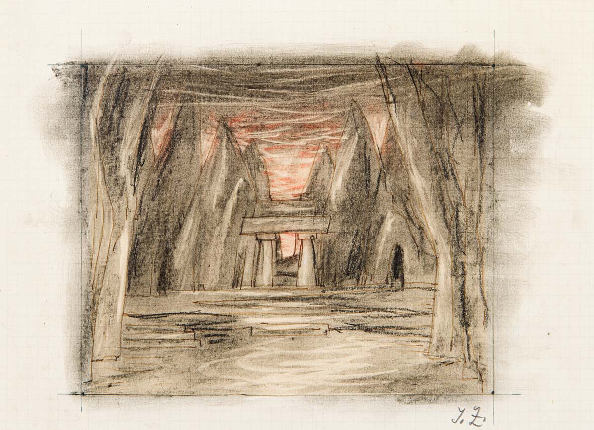 Ačkoliv se jedná o scénický návrh, dílo je pojednáno tak, že jej lze prezentovat jako dokonalou samostatnou kresbu Jana Zrzavého.