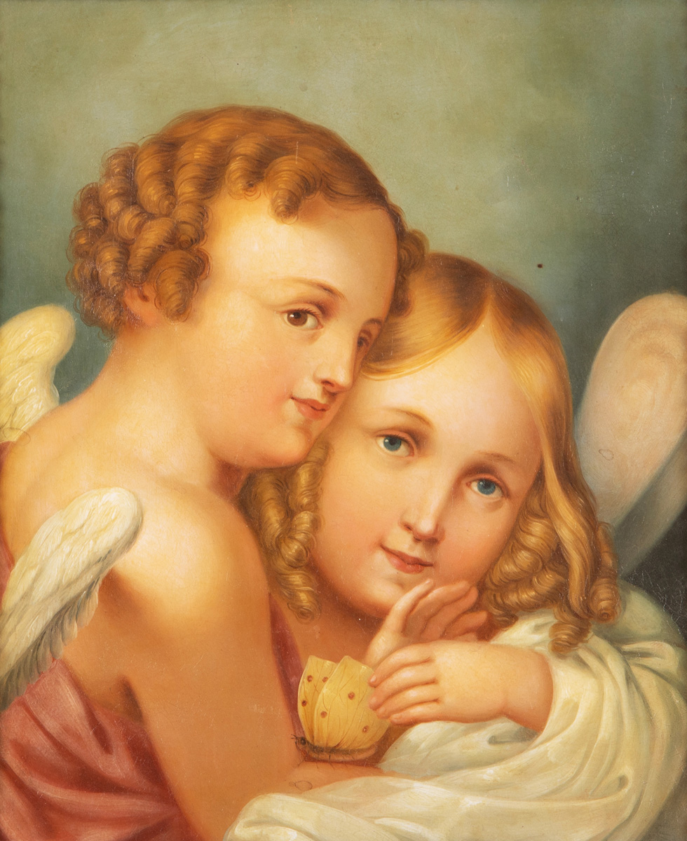 „...Předložený obraz je půvabným dílem plně reprezentujícím hodnoty biedermaieru, tak jak byly vnímány a jsou vnímány i z dnešního odstupu jako vznešený svět akcentující půvab domova a rodinného štěstí. Zobrazené polopostavy dětí s křídly jsou nepochybně kryptoportréty stylizované do rolí andělů... K autorství z okruhu slavného vídeňského