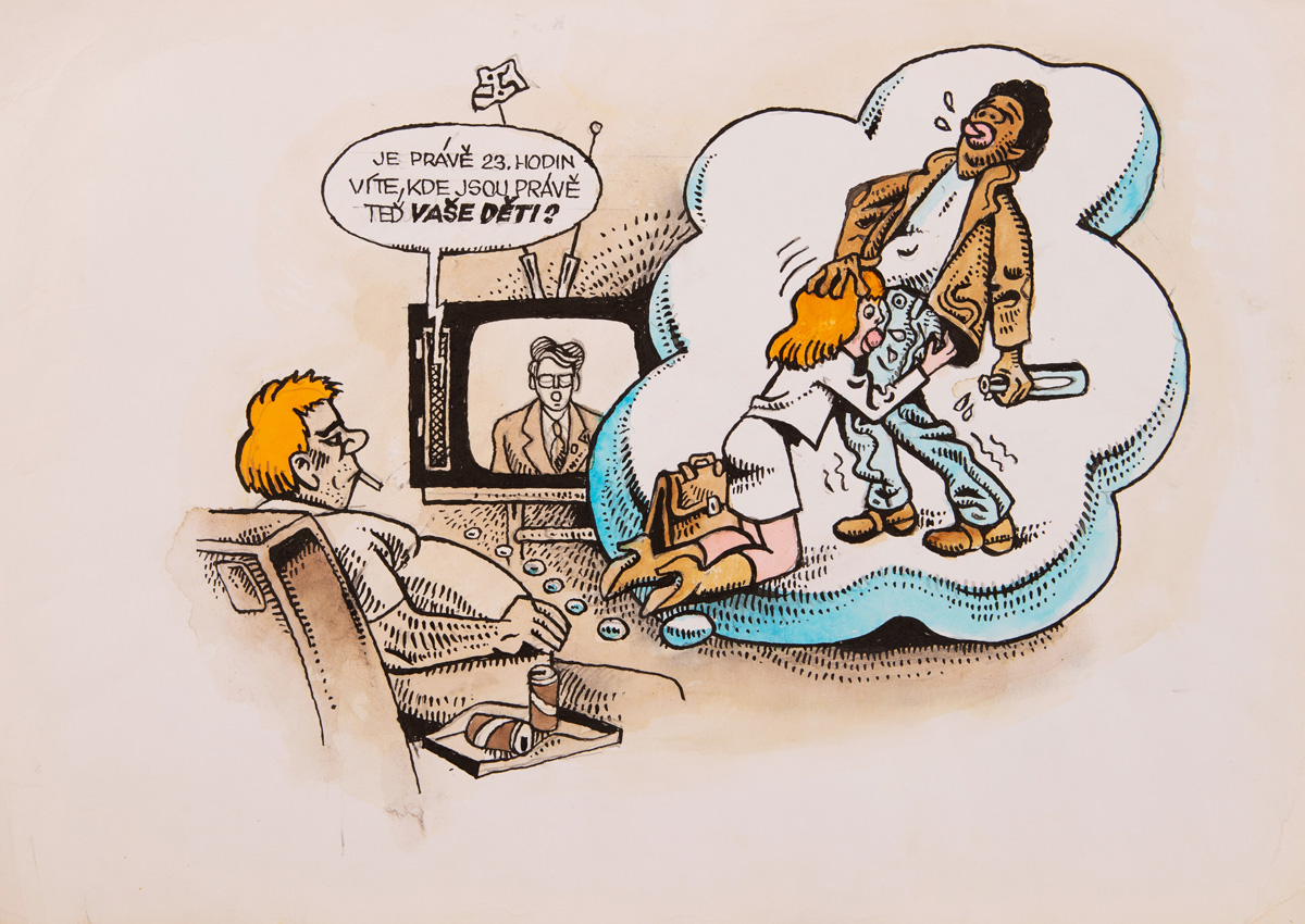 Technika a rozměr:tuš, akvarel, tužka, karton