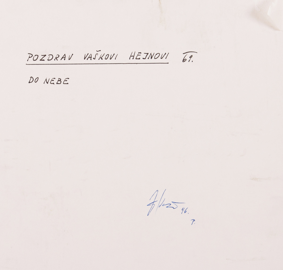 značeno na rubu: J. Kolář 96 Pocta Vaškovi Hejnovi do nebe